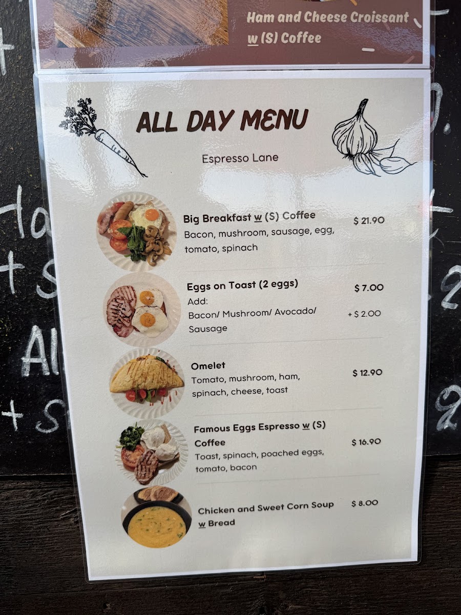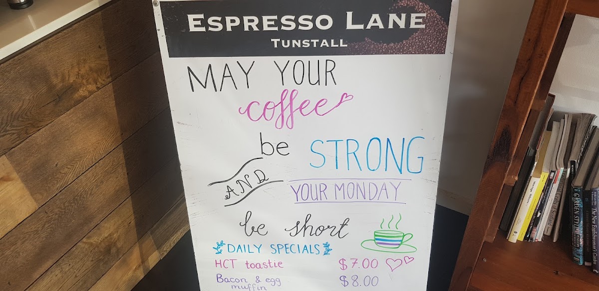 The menu at Espresso Lane Tunstall offers a selection tailored primarily for breakfast and coffee breaks, featuring coffee drinks alongside a straightforward food menu. Visitors can expect options suitable for a quick coffee on the go or a casual late breakfast or brunch setting.